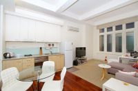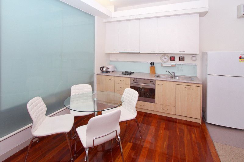 This contemporary 1 bedroom apartment offers a step-down to a huge 4m Ceiling open plan living/ dining area , adjacent is the kitchen with polished timber floorboards and quality stainless steel appliances including an oven, gas cooktop, a concealed dishwasher, range hood, a glass splashbacks and cupboard space.