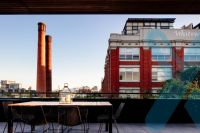 The apartments interior is finished with exposed concrete ceilings, Miele stainless steel cooking appliances with integrated dishwasher and fridge with bottom freezer draw, island kitchen with stone bench tops, timber flooring throughout living area, floor to ceiling windows and beautifully appointed bathrooms complimented by exposed brickwork.