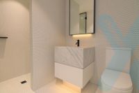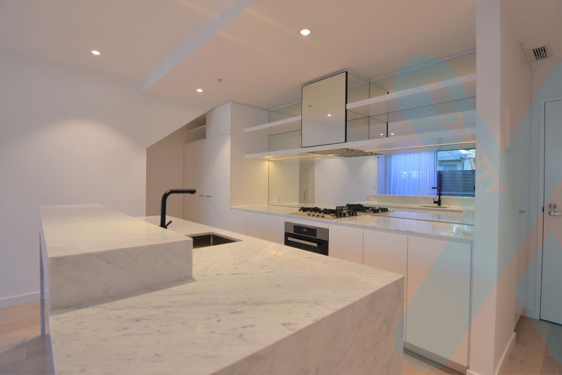This apartment is the ultimate indulgence with fully equipped kitchen with stainless steel appliances and eye catching all natural stone benches, light colour scheme throughout with opulent bathroom and en-suite with mosaic tiling and living/kitchen areas with timber floorboards and functional terraces/balconies.